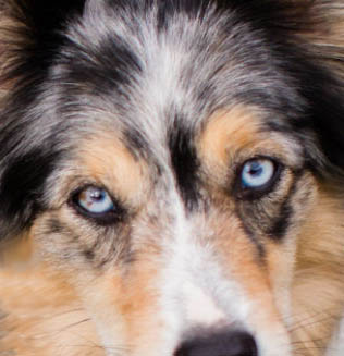 Door de verdunning van zwart kunnen honden blauwe ogen krijgen.