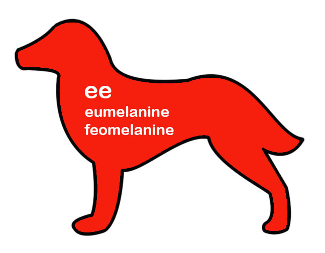 Soms is er zo weinig zwart aanwezig dat het lijkt of de hond helemaal rood (recessief rood = ee) is. Maar een recessief rode hond komt bijna niet voor.