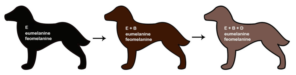 Zijn zowel het B-gen als het D-gen actief, dan wordt de zwarte vacht door het B-gen bruin en door het D-gen bijvoorbeeld fauve, chocolade of licht bruine.