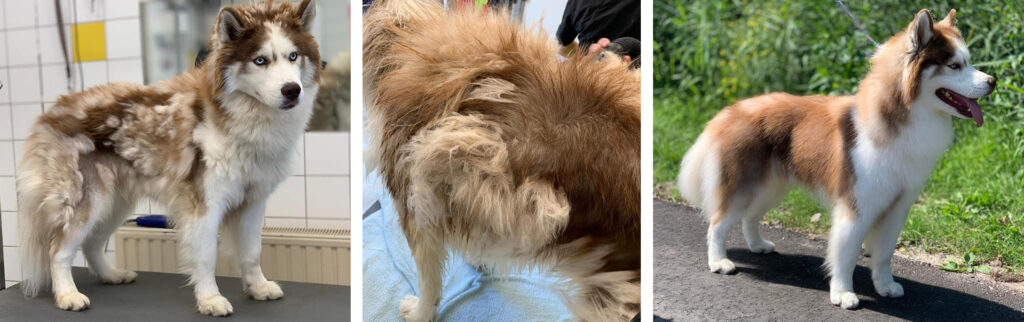 Als voorbeeld nemen we een Husky. De ideale “periodieke” verhaarhond. Niet dus!
