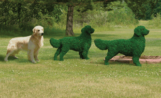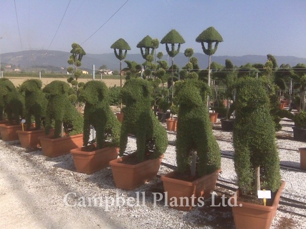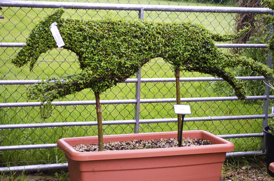 Je kunt ook een al grotere buxus kopen en daaroverheen een metalen gaasfiguur plaatsen.