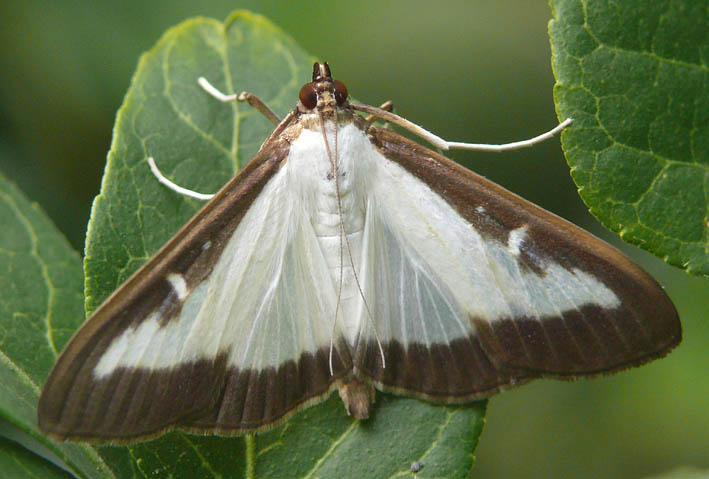Witte spinsels, groene met zwarte en witte rups, mot met witte vleugels en zwart randje of een wat bruinere mot met een licht wit randje.