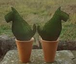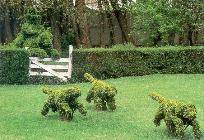 Je kunt ook een al grotere buxus kopen en daaroverheen een metalen gaasfiguur plaatsen.