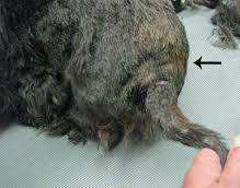 Sommige klanten denken dat hun hond te dik wordt omdat hij/zij rolletjes “vet” bij de staart krijgen als ze hun staart omhoog doen.