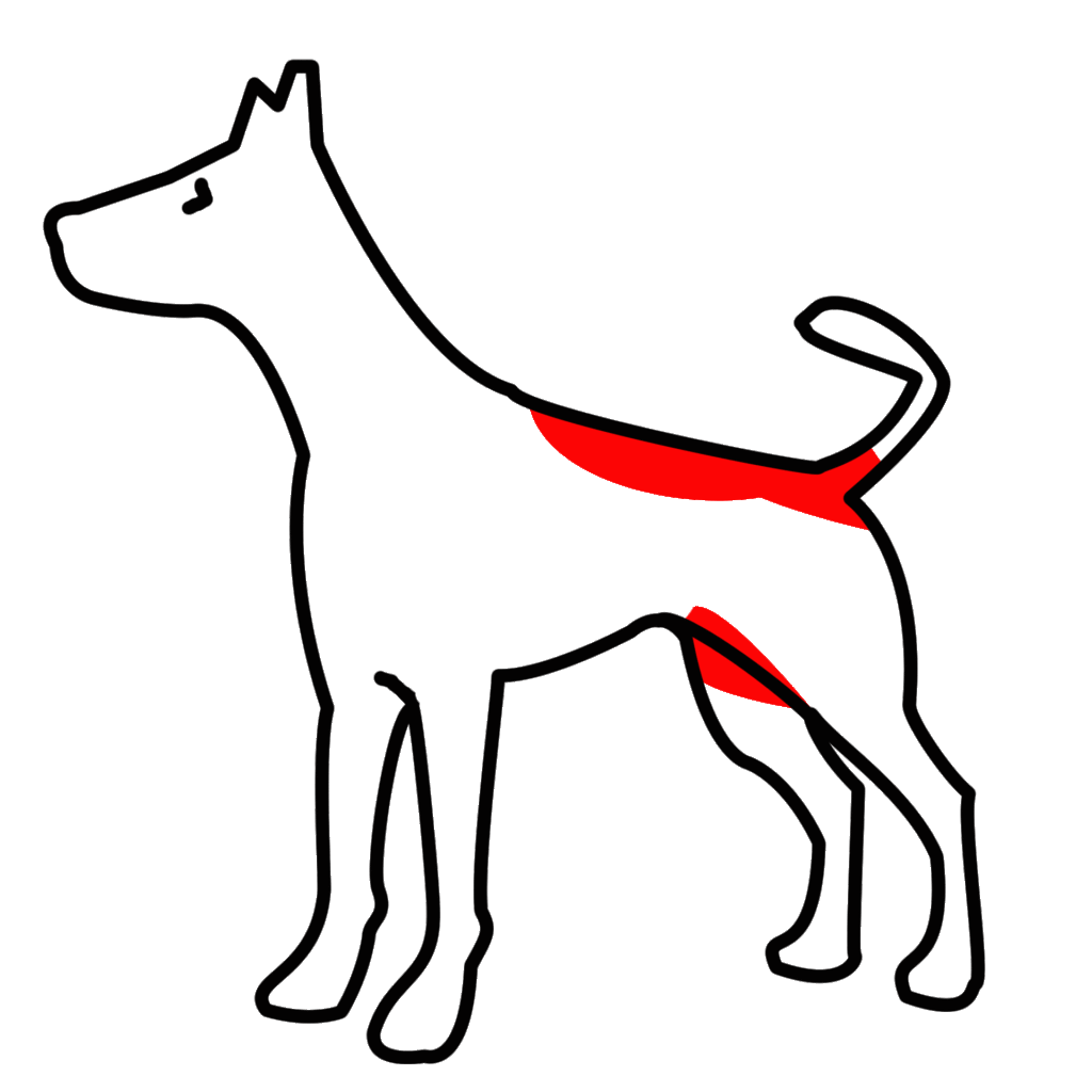 • Heftige jeuk over het lijf maar vooral rug, staart en liezen