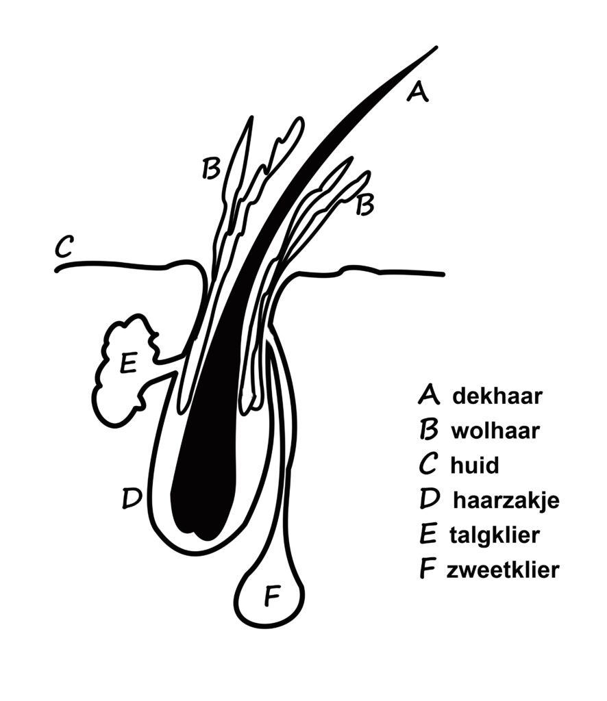 Met behulp van dit beschermlaagje wordt het water afgestoten door de vacht. En omdat de haren over het algemeen dakpansgewijs over elkaar heen vallen, kan het zomaar gebeuren dat een vacht onder de bovenste dekharen nog droog is terwijl de bovenkant wel nat is na een flinke regenbui.